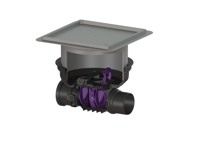 For at forhindre kælderoversvømmelse, skal der i gulv eller betondæk installeres et type 2 højvandslukke til ikke-fækalieholdigt spildevand. Højvandlukket skal være udstyret med to selvlukkende klapper, hvoraf det ene kan tvangslukkes med håndkraft (nødlukning), som typen KESSEL Staufix fra Lauridsen Handel & Import A/S. (Best.nr. 192146162 - se www.lhi.as)