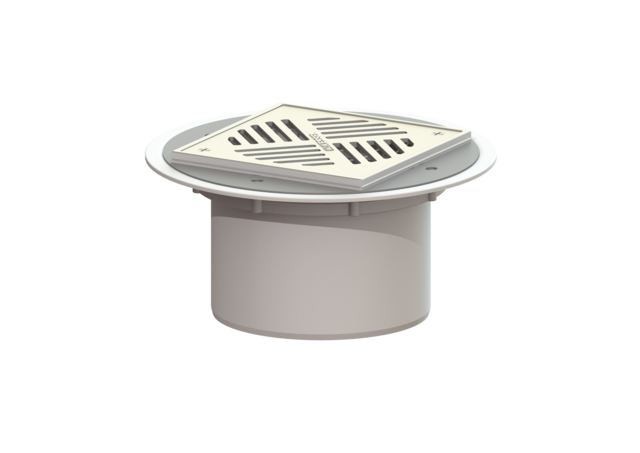 Topstykke med flange til flyde membran (ABS) Rist 200 x 200 mm fastskruet og ramme i rustfristål. Klasse L 15. Kan modstå belastninger op til maks 1,5 ton.