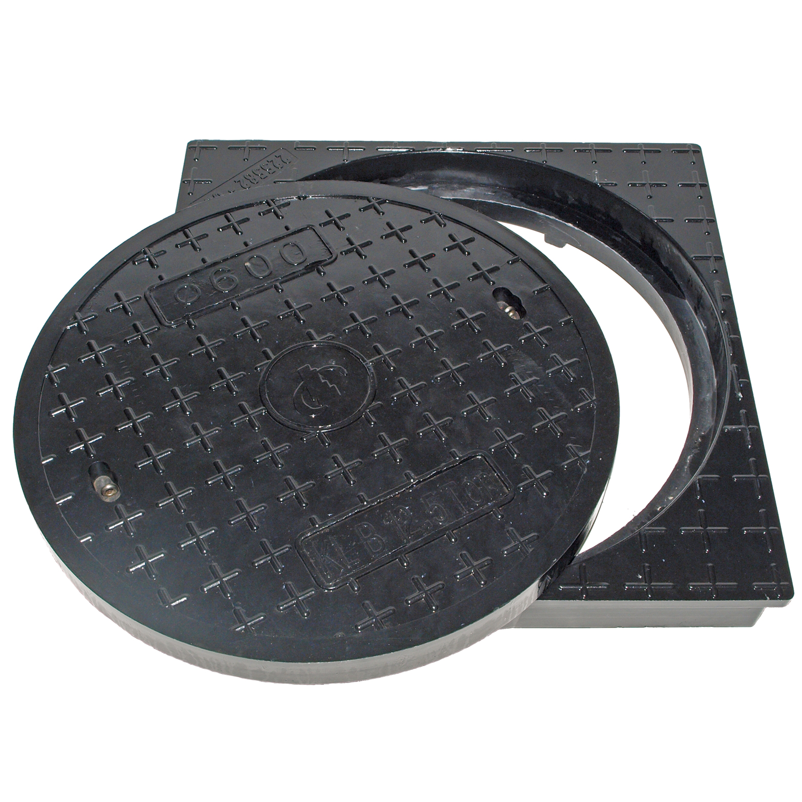 Dæksel og karm er fremstillet i glasfiberarmeret polyester med indlagte stålarmeringer. Derfor er dækslet sporbart ved evt. tildækning. Dækslet leveres med nedsænkede øjebolte. Den firkantede karm sikrer at det er let at lægge belægningsten ind til dækslet.