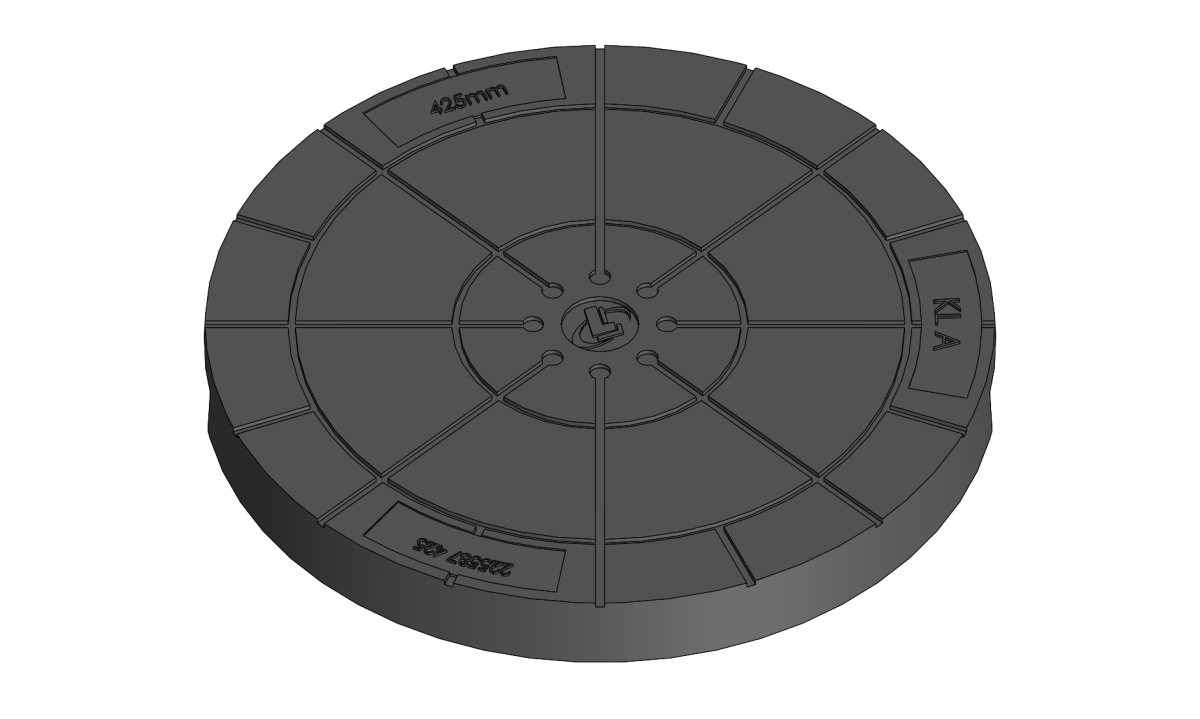Glat dæksel af genbrugsplast til anvendelse som fritliggende eller på kegle uden fals, som typen glat dæksel fra Lauridsen Handel & Import A/S.